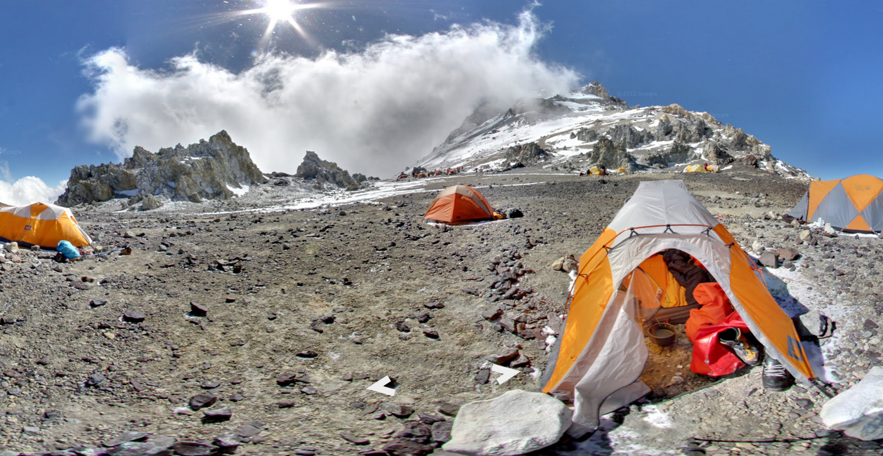 Esplorate il possente Monte Aconcagua in Argentina, la vetta più alta negli emisferi occidentali e meridionali. Guardate com’è organizzato, tra le rocce di Plaza Argentina, un campo base e come si svolge la vita al suo interno: come gli scalatori mangiano, campeggiano e si preparano alla salita.