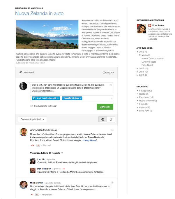 widget. Potete inoltre visitare il Blog ufficiale di Google e Blogger Buzz per vedere i commenti Google+ in azione.