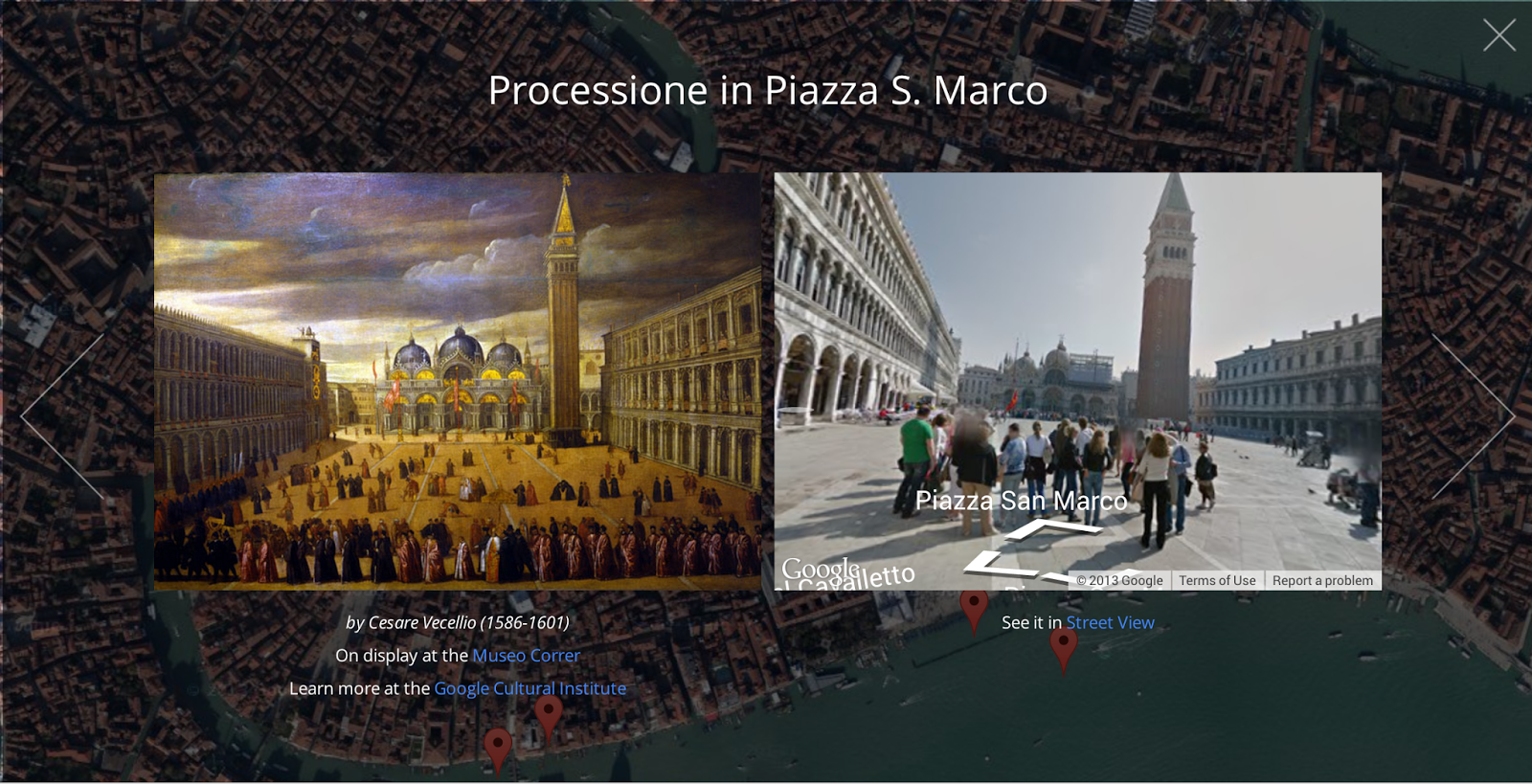 Abbiamo anche realizzat un minisito per consentirvi di mettere a confronto la Venezia di oggi con i dipinti di Carpaccio e Cesare Vercellio raffiguranti gli stessi luoghi