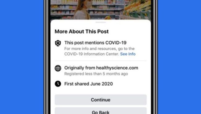 HomeFacebook, pop-up prima di condividere news sul COVID-19