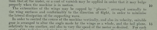 E questo è uno dei disegni del brevetto di Lanchester, in cui si vede l’ala troncata e dotata di un capping plane o piano terminale (dettaglio e di Figura 12):