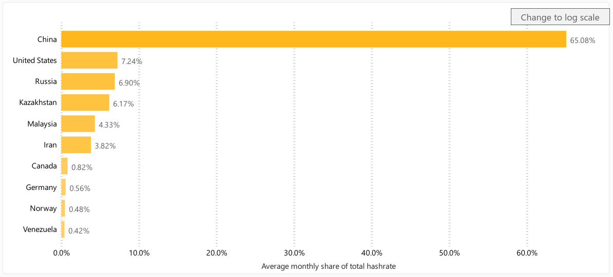 Il 65% dell’hashrate (la potenza di calcolo complessiva usata per generare bitcoin e gestirne le transazioni) si trova in Cina.