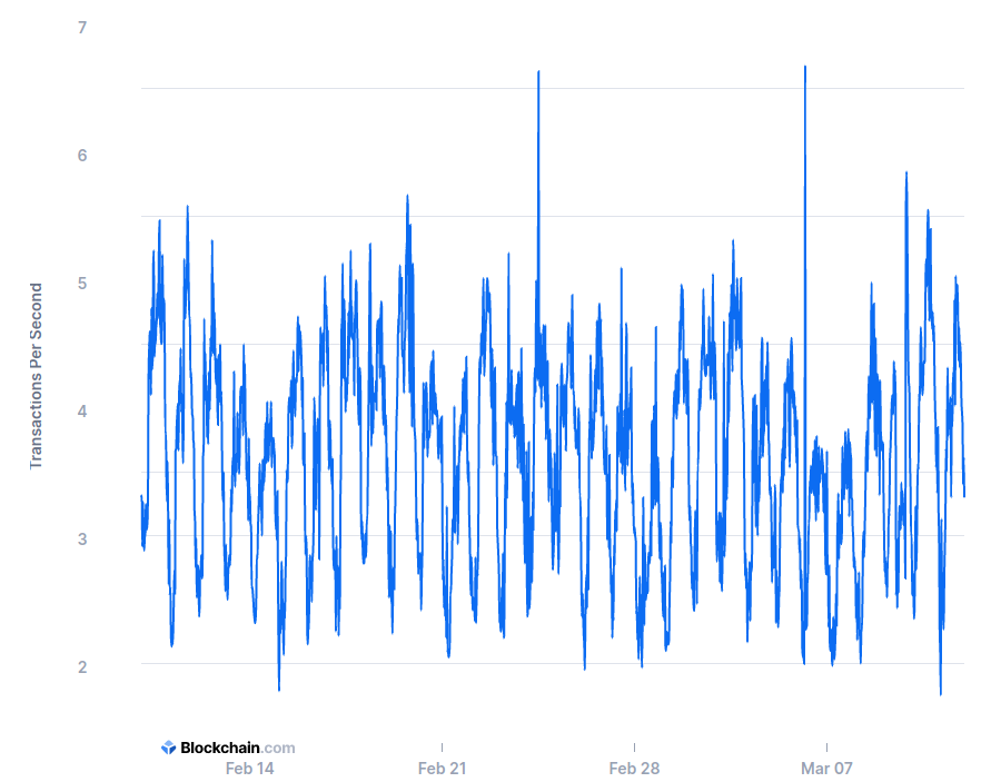A titolo di confronto, la rete informatica di un singolo gestore di carta di credito, come Visa, ha una capacità teorica di 65.000 transazioni al secondo.