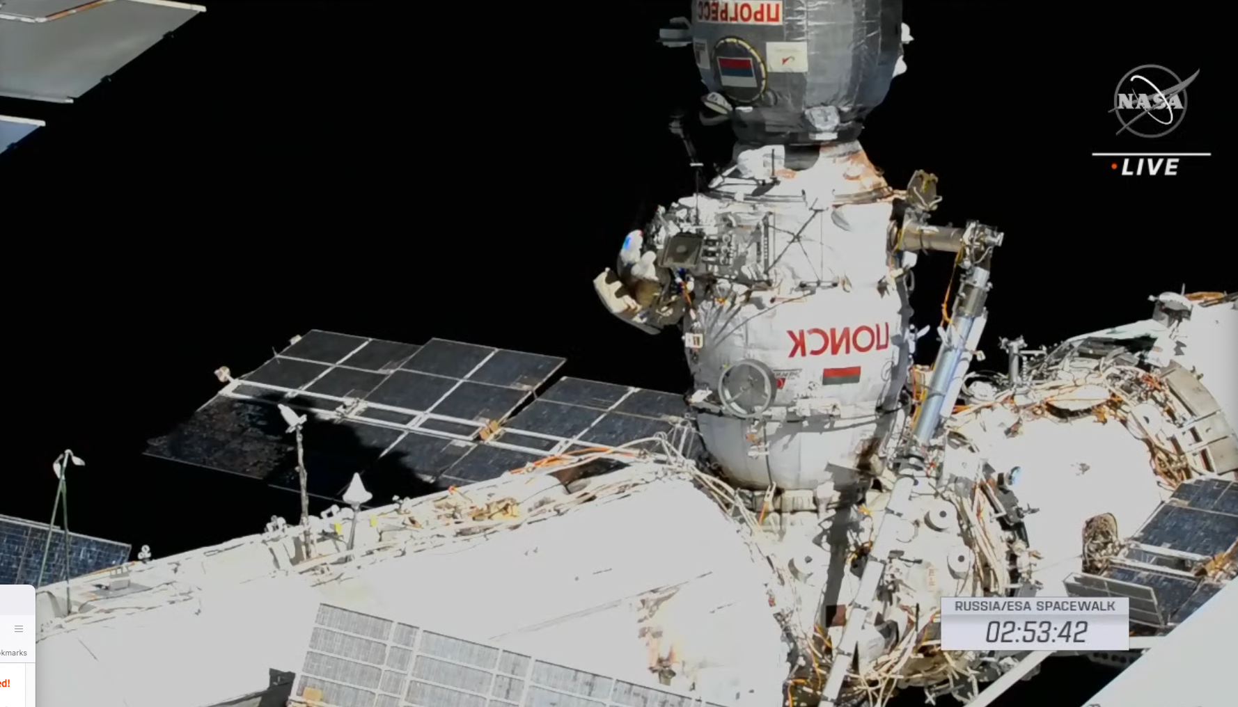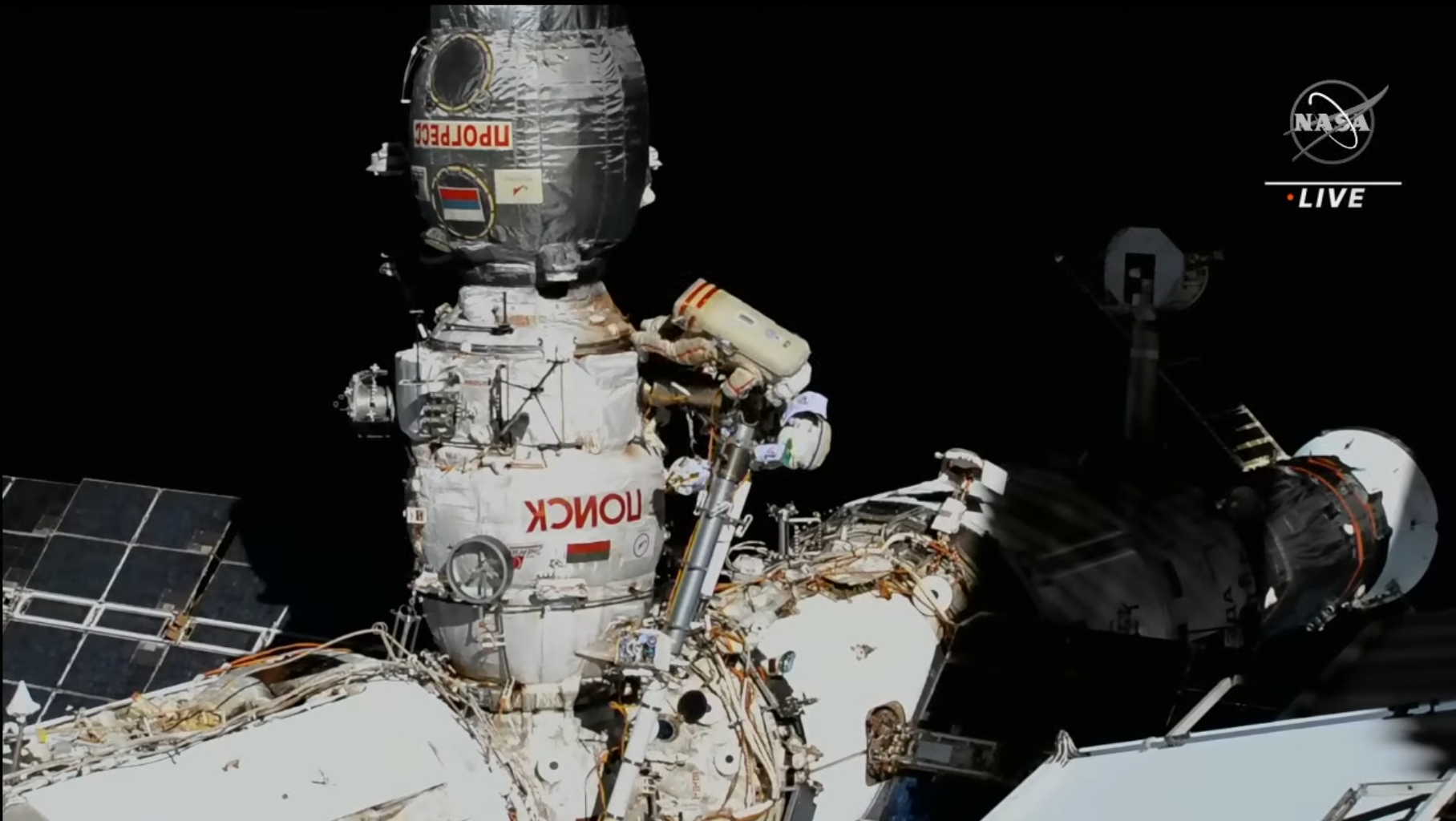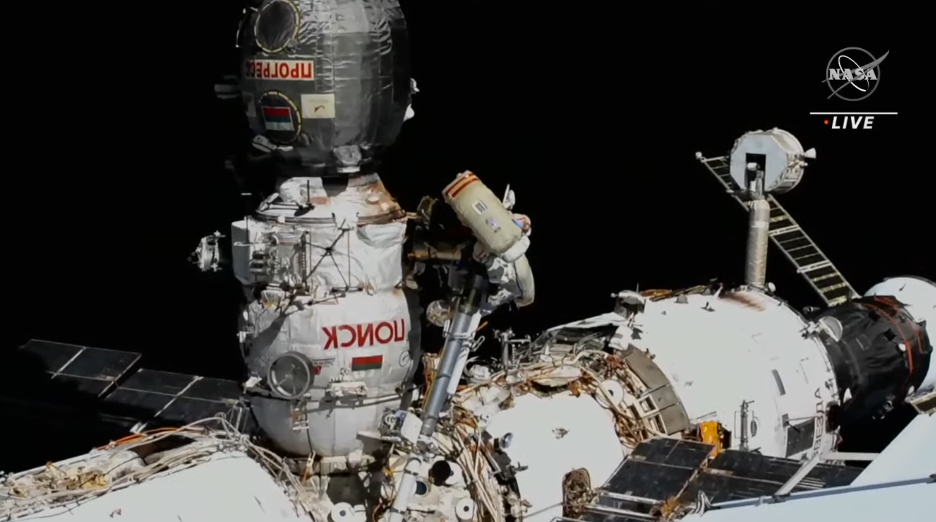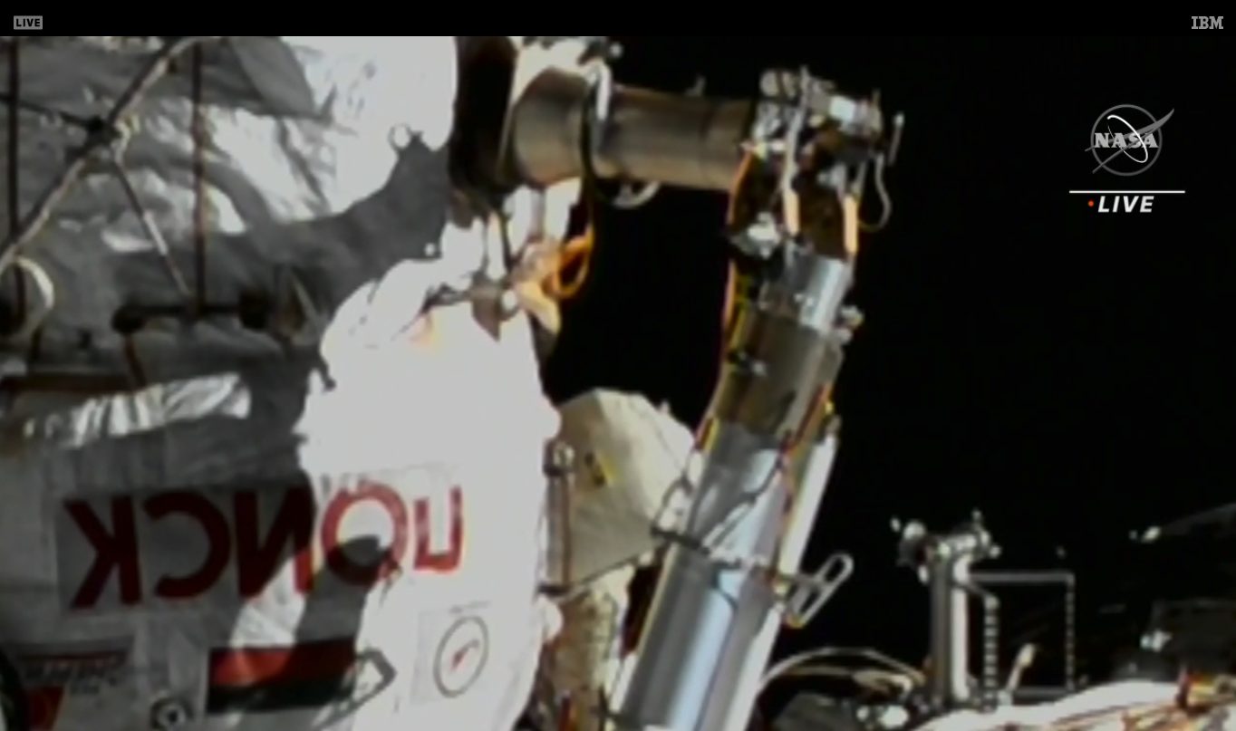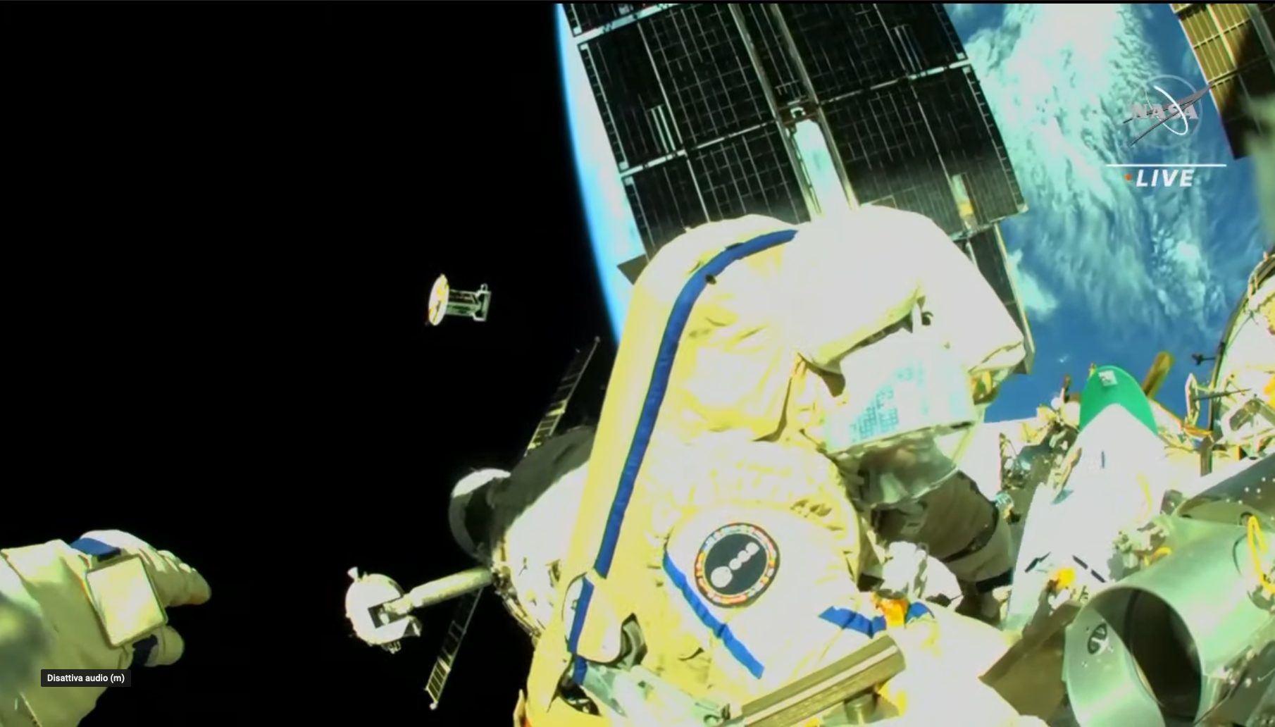 Prima parte (uscita dall’airlock a 00:47:00 circa; 1:52:00 inizio lancio nanosatelliti; 2:16:00 collisione di un nanosatellite con uno dei pannelli solari russi; 2:54:00 circa, inizio lavoro all’adattore ERA; fine video a 4:06:12):