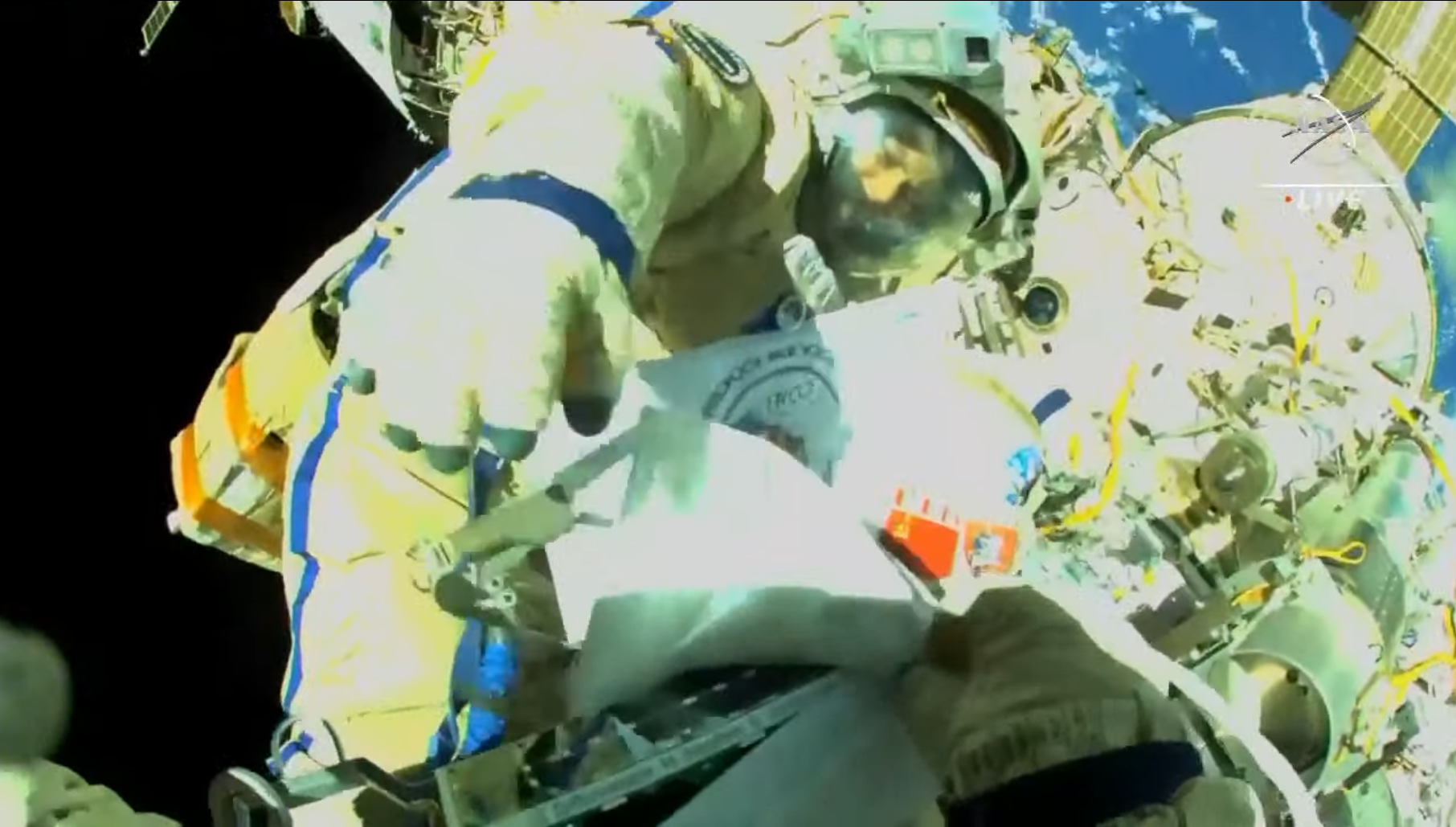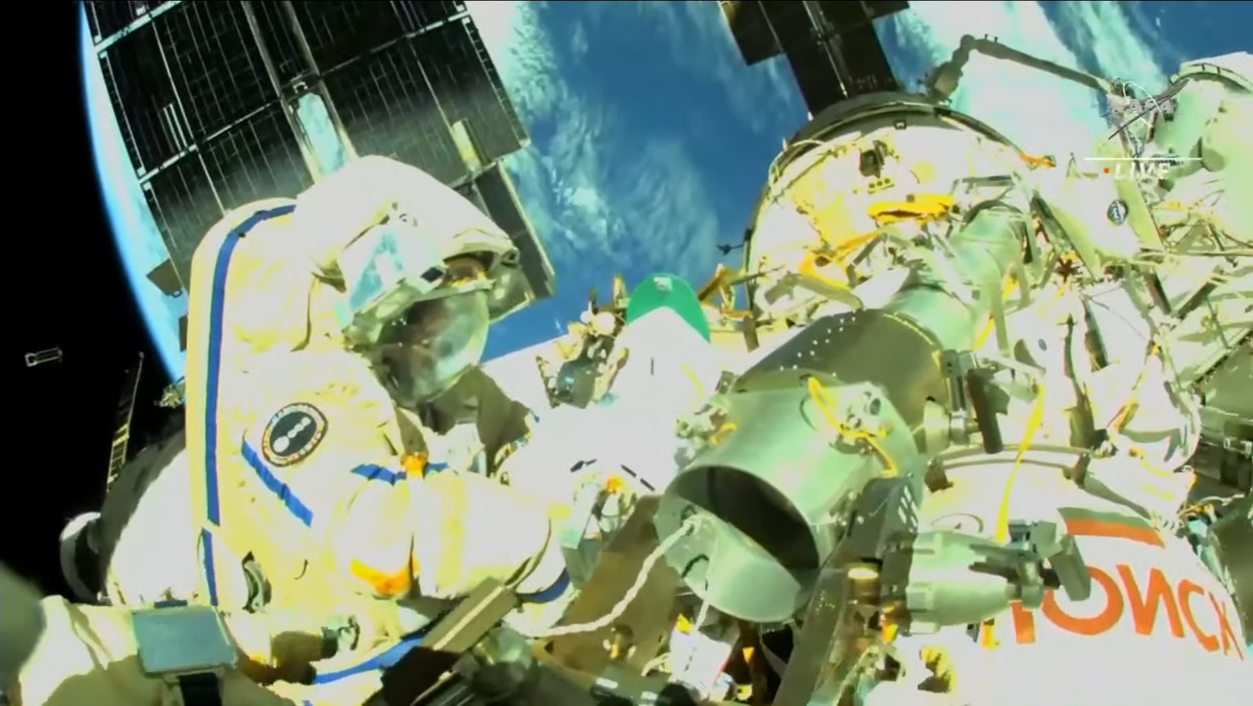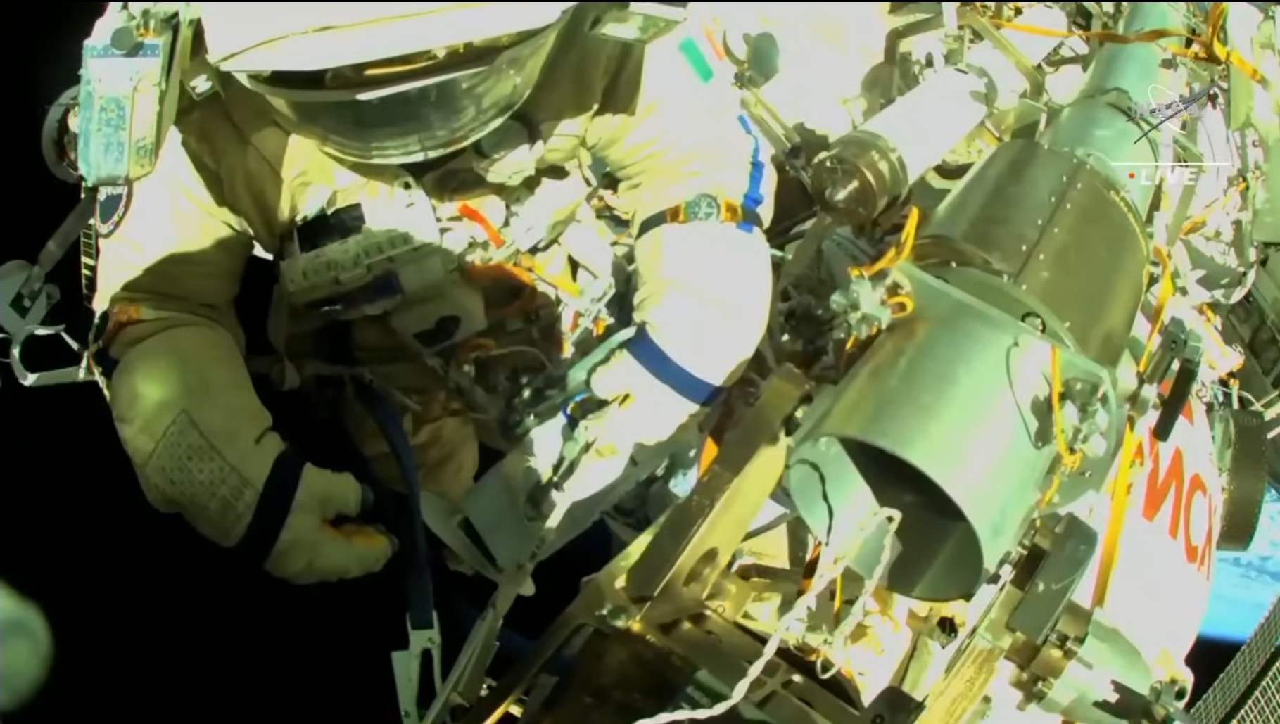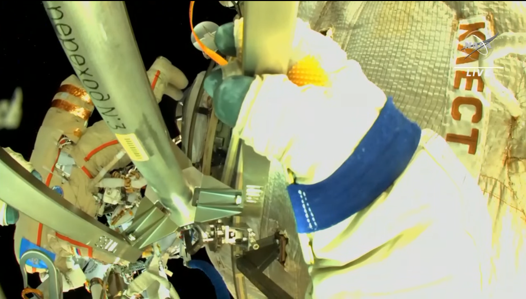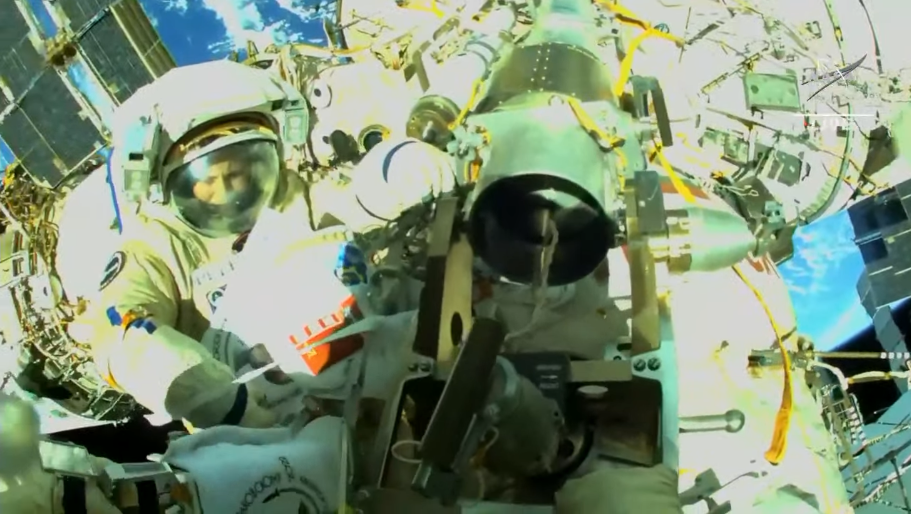 Oggi (venerdì 22) Artemyev e Cristoforetti hanno riposato fino a tardi e hanno trascorso il resto della giornata a pulire le proprie tute spaziali e a ispezionare gli attrezzi e i cavi di sicurezza.