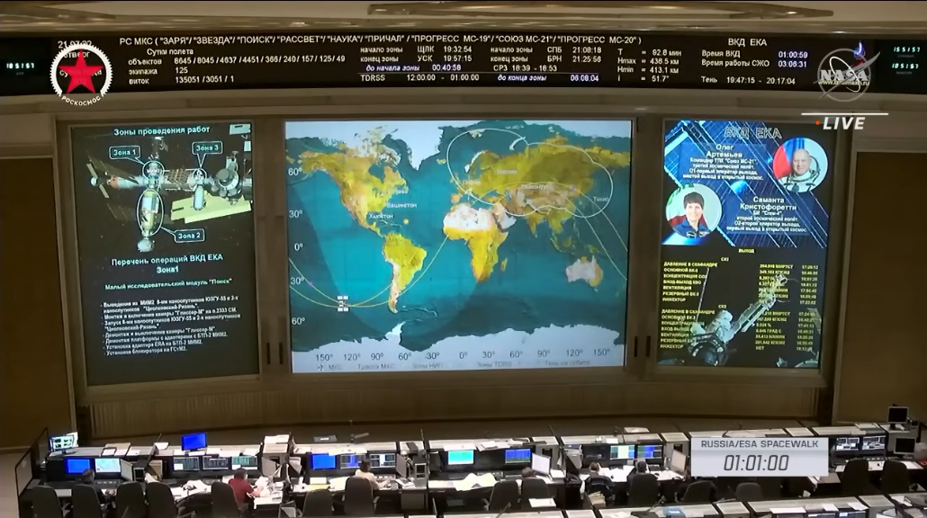 Si è conclusa tardi ieri sera (alle 23:55 del 21 luglio, ora italiana), dopo sette ore e cinque minuti, la prima attività extraveicolare (EVA) di Samantha Cristoforetti, che è anche la prima di una donna europea, è una delle pochissime effettuate da europei usando tute russe, ed è anche l’unica compiuta da una persona europea usando una tuta russa sulla Stazione Spaziale Internazionale (le altre furono effettuate sulla stazione russa Mir da Jean-Loup Chrétien, Thomas Reiter e Jean-Pierre Haigneré). L’EVA è iniziata formalmente alle 14.50 GMT, con circa 50 minuti di ritardo, ed è terminata alle 21.55 GMT.