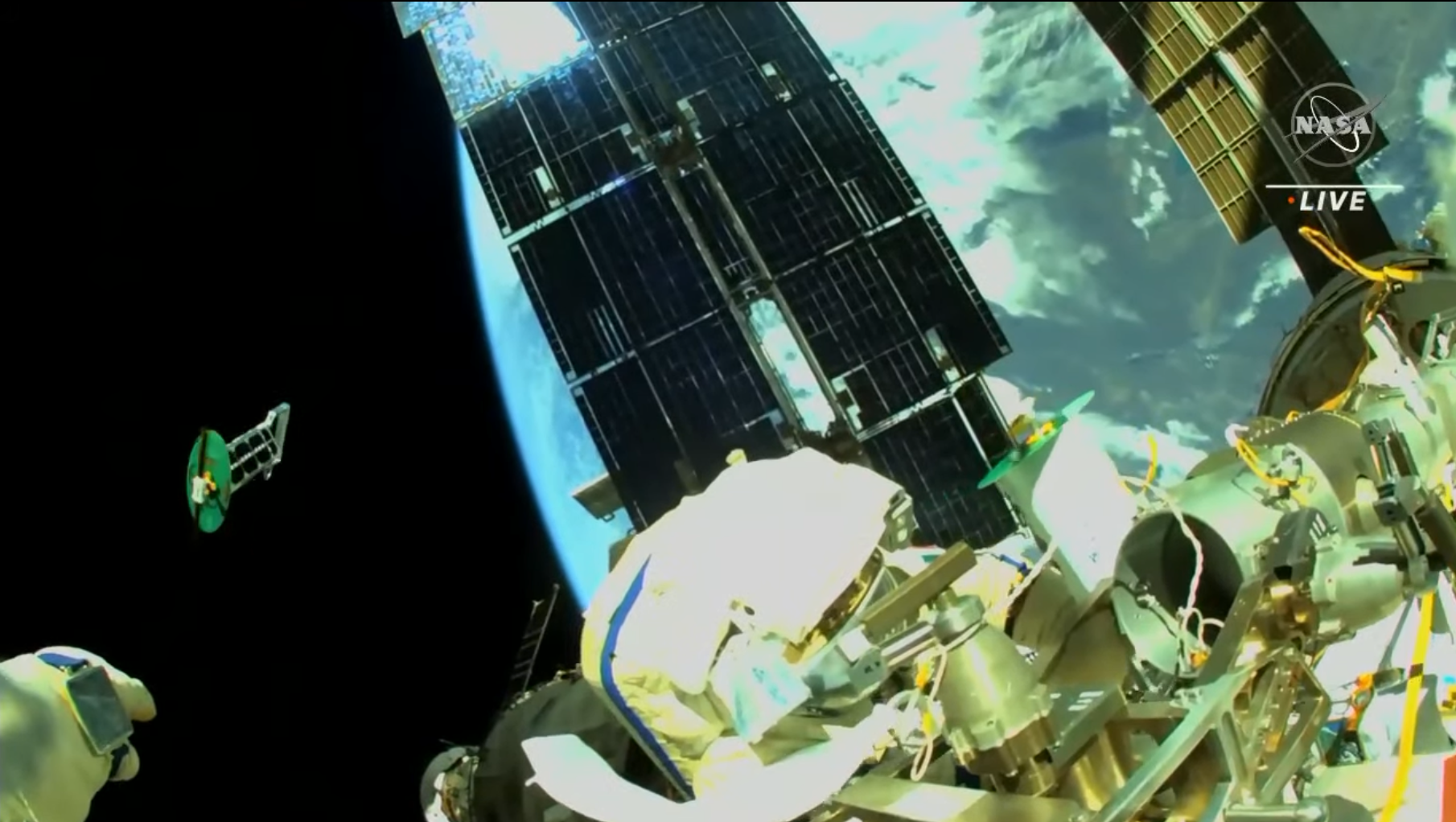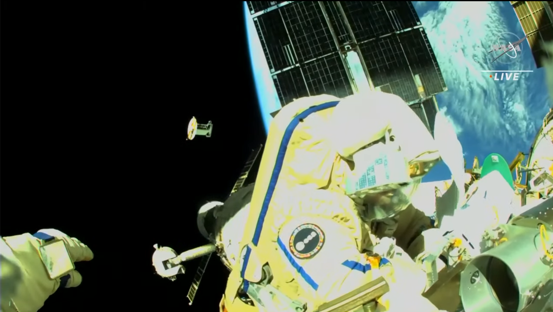 Ho scritto “prima” EVA di Samantha perché credo che se ne prospetti una seconda, dato che durante questa non è stato possibile completare tutti i compiti previsti: sono stati lanciati dieci nanosatelliti, è stata montata una piattaforma temporanea che verrà usata dal braccio robotico europeo, è stato installato un adattatore per payload sul modulo russo Nauka, è stato preparato il pannello di controllo esterno del braccio robotico, è stata sostituita la copertura di una telecamera per migliorarne la nitidezza e sono state effettuate varie altre operazioni, ma non c’è stato tempo di estendere il braccio-passerella Strela per facilitare le prossime EVA.