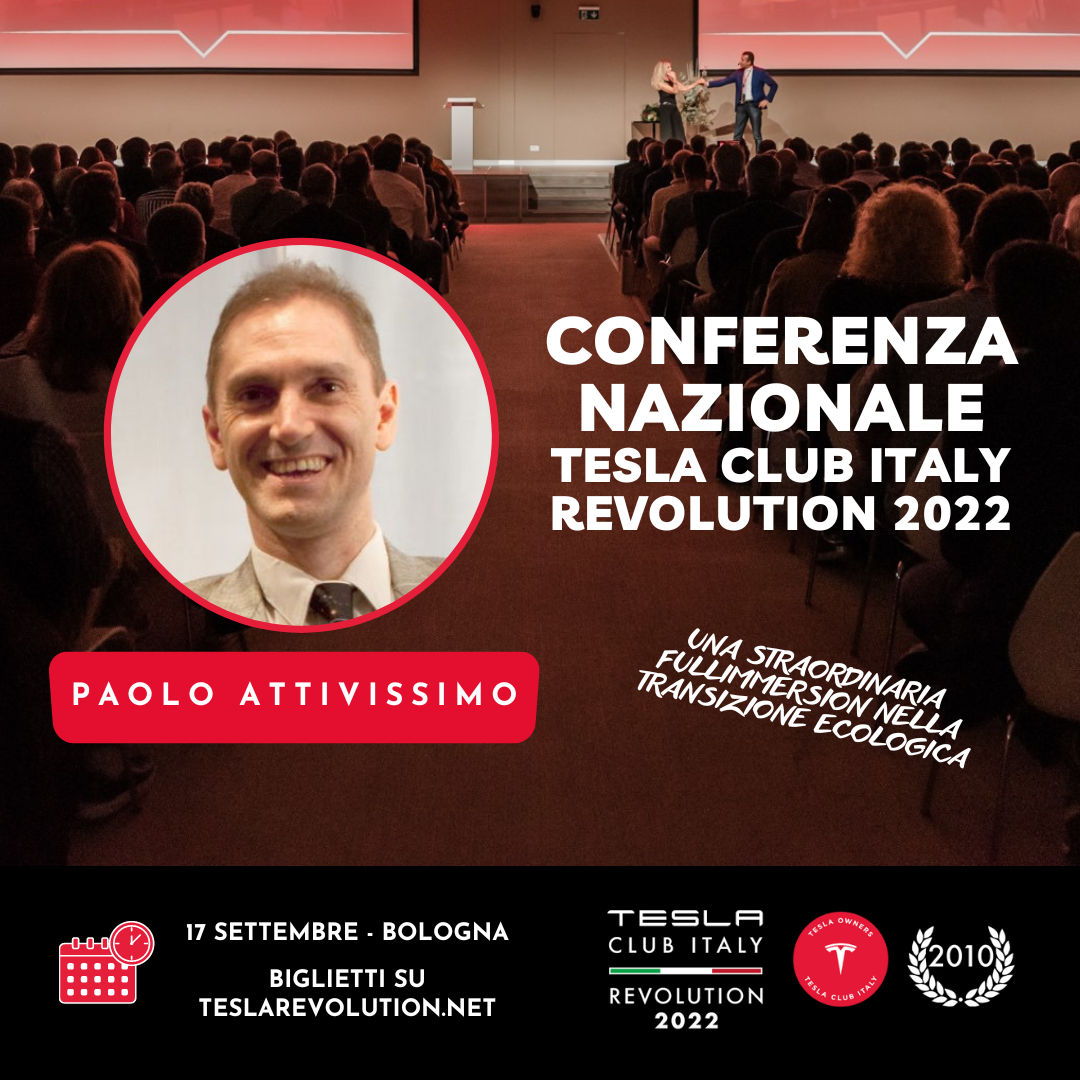 Come preannunciato, sarò ospite e relatore al Tesla Club Italy Revolution, la conferenza nazionale dedicata alla casa automobilistica Tesla e a tutto il mondo della mobilità elettrica, che si terrà a Bologna al FICO Eataly.