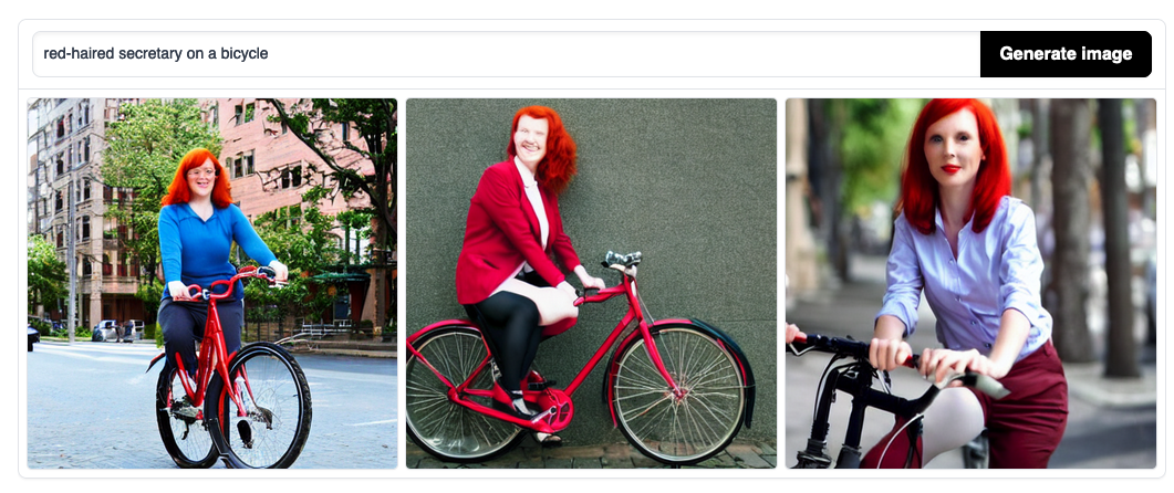 Per evitare questi abusi, i principali generatori hanno dei filtri appositi, ma non funzionano perfettamente. E c’è anche il problema dei pregiudizi culturali involontari di chi li crea. Per esempio, il termine inglese secretary (segretario o segretaria) non indica se si tratta di una donna o di un uomo, ma quando ho chiesto a Stable Diffusion di crearmi delle immagini di secretary con capelli rossi in bicicletta, mi ha mostrato tre donne, come se il lavoro di segreteria fosse esclusivamente femminile.