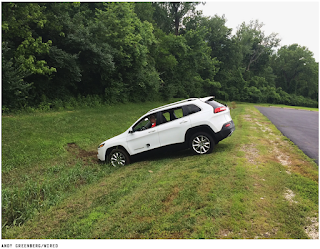 [CLIP: audio dell’abitacolo di un’auto nel quale la radio è ad altissimo volume, seguito dalle imprecazioni censurate del conducente e dal rumore di un impatto. Immagine tratta da Wired.]