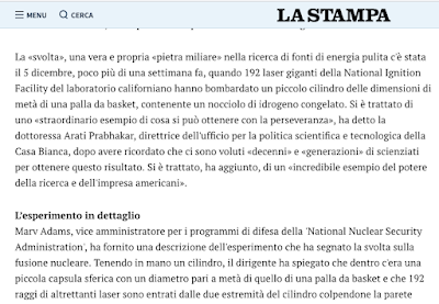 Fusione nucleare, le minchiate incredibili scritte da Repubblica, Corriere e La Stampa. Non c’è altro modo sincero di definirle
