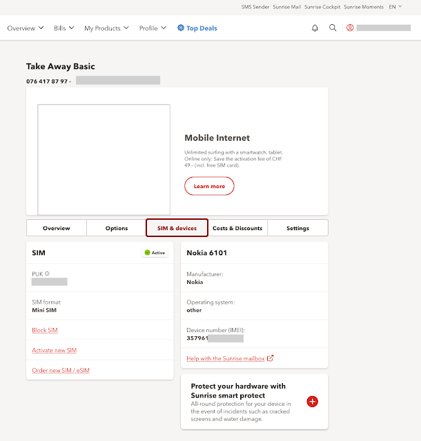 mai avuto il Nokia 6101 che secondo Sunrise starebbe usando quel numero e la