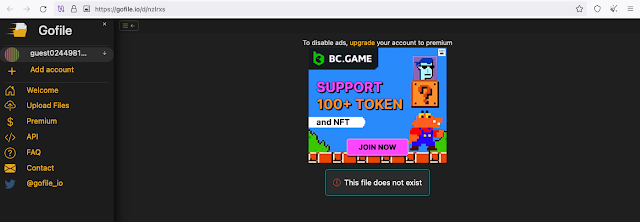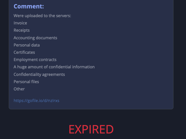 sito Gofile.io, presso il quale i criminali dichiarano di aver pubblicato i