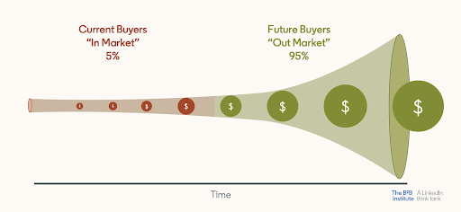 Obviously, that 5% of active “in-market” buyers is in high demand. There is fierce competition for their attention, engagement, and consideration. But if your marketing strategy is overwhelmingly focused on that very small subset of your audience, you’re leaving a ton of opportunity on the table – opportunity to gain a key advantage with those many future buyers.