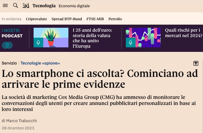 Antibufala: Sole 24 Ore, “Lo smartphone ci ascolta? Cominciano ad arrivare le prime evidenze”. Ma anche no