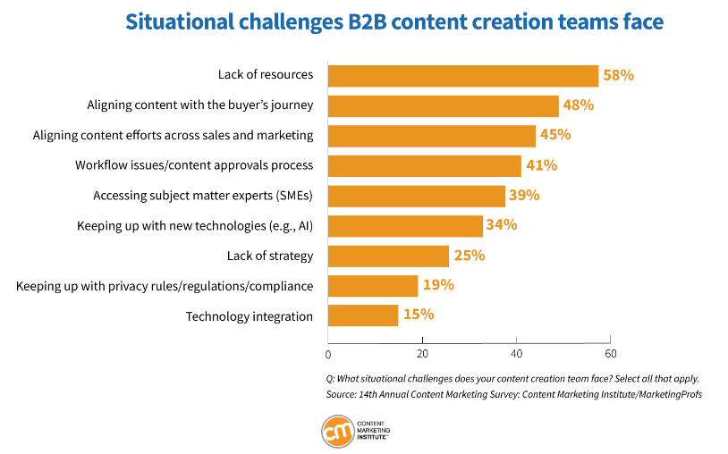 Nearly 60% of marketing teams cite a lack of resources as their biggest situational challenge when it comes to content creation.