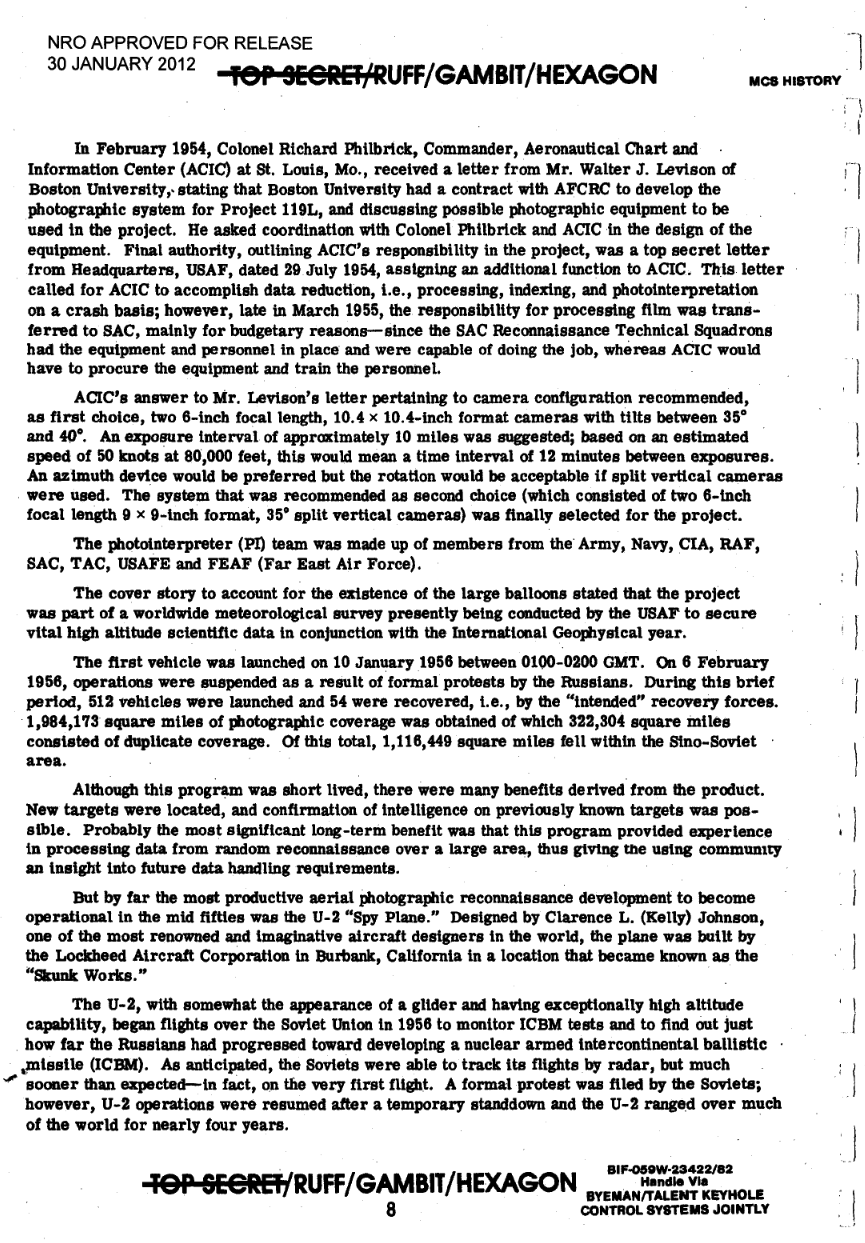 Nel giro di poche settimane gli Stati Uniti lanciarono oltre 500 di questi palloni-spia, ma il programma fu annullato dopo soli 27 giorni appunto a causa delle proteste sovietiche e anche perché molti palloni furono abbattuti dai caccia o caddero in territorio russo, dove le preziose fotocamere top secret e le pellicole furono recuperate, rivelando chiaramente la natura militare dei sorvoli statunitensi.